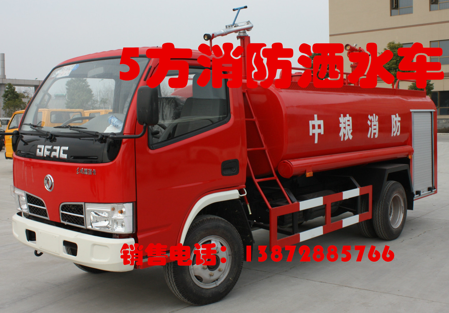 消防灑水車,它是在消防車和灑水車之間設(shè)計(jì)出來的。