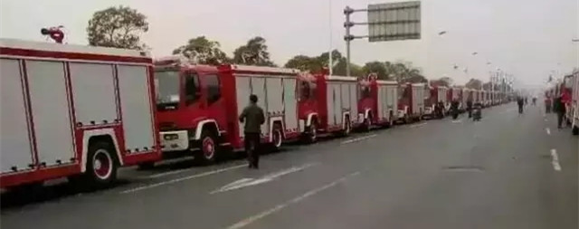 115臺慶鈴五十鈴泡沫消防車和發(fā)車場景圖