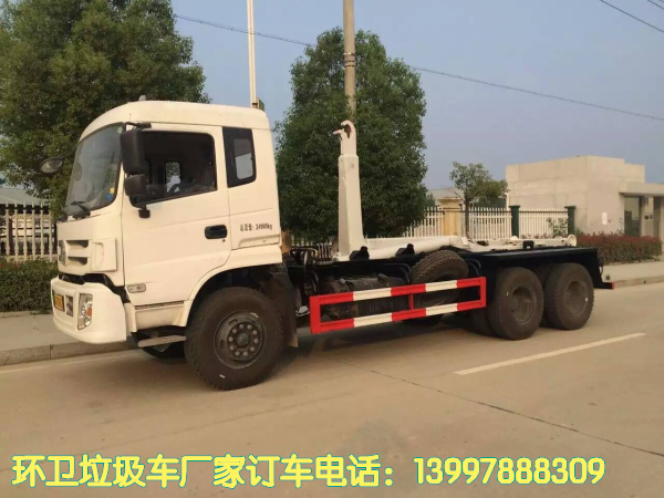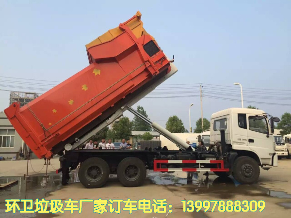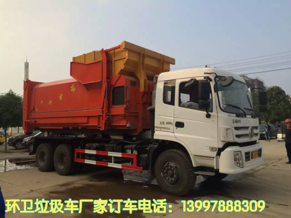 一個星期前,程力環(huán)衛(wèi)垃圾車廠家出售的18方移動垃圾壓縮箱配東風(fēng)后雙橋車廂可卸式垃圾車拖運: