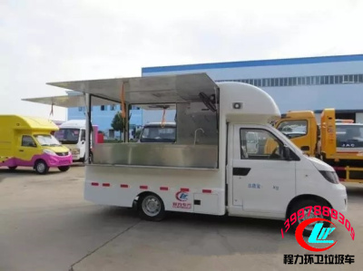 餐飲車又叫移動(dòng)餐飲售貨車,由貨車底盤(pán)改裝而成,外形美觀,一車多用,集廣告宣傳、物資配送、商品售賣和快餐飲料等功能于一體,貨廂三面均可展開(kāi),外觀顏色多種可選,也可根據(jù)實(shí)際需求調(diào)整內(nèi)部結(jié)構(gòu)和在車身上噴繪特色廣告,還可選裝燈箱廣告和車身廣告系統(tǒng)。售賣地點(diǎn)可選在車站、校門口、步行街、休閑廣場(chǎng)、體育場(chǎng)館、旅游景點(diǎn)等場(chǎng)所,還能開(kāi)到鄉(xiāng)鎮(zhèn)趕集,適用于快餐、冷飲、水果、蔬菜、水產(chǎn)、百貨等商品銷售。