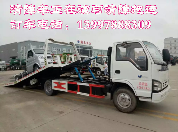 5、平板型道路清障車,平板上用綁帶固定故障車時(shí),必須四條綁帶都要鎖緊在車輪或車身。