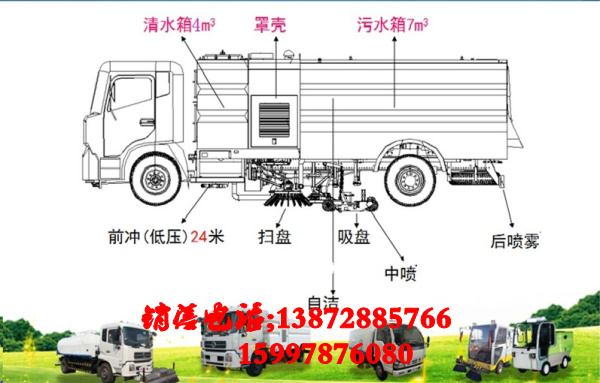 洗掃車水箱容積大,采用的是高壓水泵,掃路時(shí)先用水對(duì)路面進(jìn)行高壓沖洗,再頑固的垃圾都能直接沖起來,再吸掃收集垃圾,以達(dá)到更好的清掃效果,更簡(jiǎn)單的說就是,洗掃車比掃路車多加裝一個(gè)高壓水泵,加大了水箱容積,加大了副發(fā)動(dòng)機(jī)馬力,【天錦掃路車副發(fā)動(dòng)機(jī)采用康明斯140馬力,天錦洗掃車副發(fā)動(dòng)機(jī)采用康明斯170馬力】掃路車洗掃車都可加裝沖前,后灑,高射炮,霧炮機(jī),前噴霧,后噴霧,伸縮圈盤,雪鏟,雪輥,