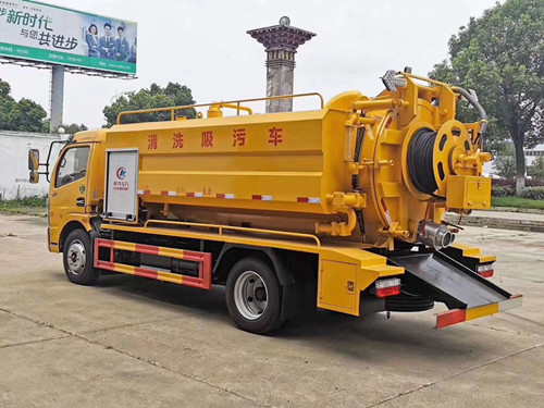 上裝配置: 6mm 武鋼優(yōu)質(zhì)碳鋼板,SK -12水循環(huán)泵,雙耀170/215高壓泵,后置式高壓清洗卷盤(pán),60米19高壓管,10個(gè)標(biāo)配高壓噴頭,8米吸污管一根,防溢閥,視污管,1個(gè)100口徑的吸污口,1個(gè)150的排污口,帶自卸功能,后門(mén)帶液壓開(kāi)啟,內(nèi)有2道防浪板支撐,帶氣吹水功能,帶淋管裝置。
