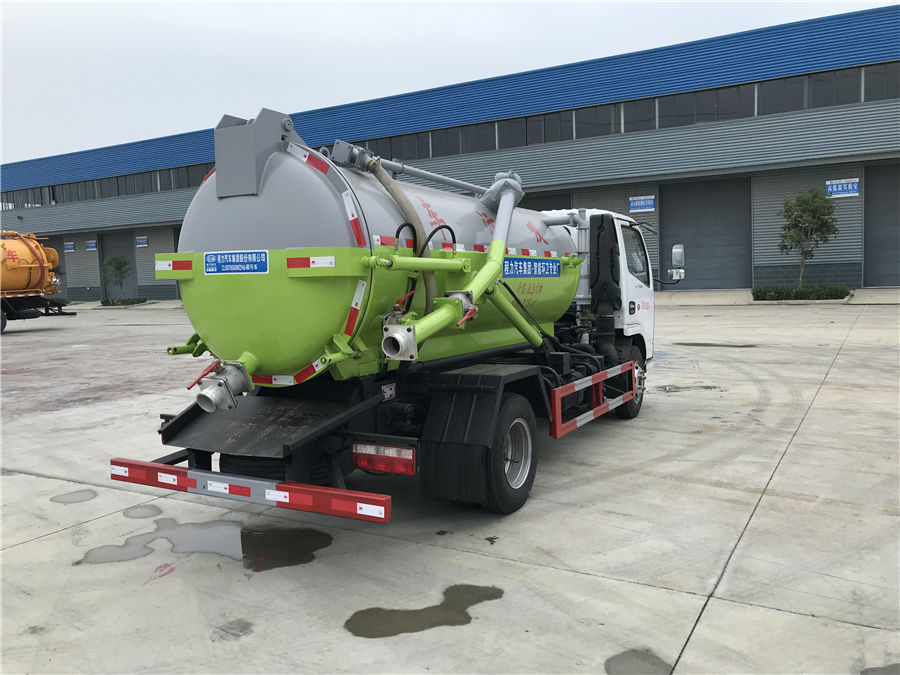 罐體容積:5方,吸污罐體材質(zhì):優(yōu)質(zhì)碳鋼, 板材厚度5mm。配sk-6水循環(huán)吸污泵或8噸油泵,垂直吸程:9-10米,由取力器、傳動軸、專用真空吸污泵、高壓成型罐體、多路換向閥、吸污管道,管網(wǎng)系統(tǒng),防溢閥門,102口徑鋁合金球閥,可視視糞管組成,8米橡膠鋼絲吸污管一根、罐體兩邊安裝液壓缸帶舉升功能,可以罐體舉升45度,后蓋液壓缸液壓打開,鎖緊裝置一套,排泄更干凈。