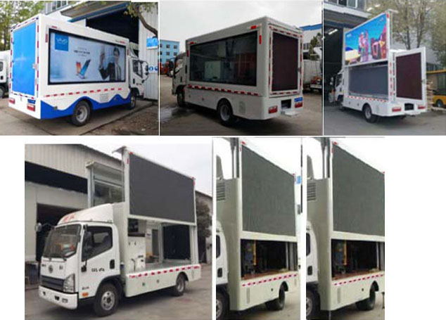 該車是用于廣告宣傳的專用車輛.專用裝置為LED顯示屏.側(cè)后防護采用裙板結(jié)構(gòu)代替,后部裙板離地高為500mm.ABS防抱死制動系統(tǒng)生產(chǎn)廠家/型號:1.廣州瑞立科密汽車電子股份有限公司/CM4XL-4S/4M;2.浙江萬安科技股份有限公司/VIE ABS-II.隨底盤選裝駕駛室,兩側(cè)均可選裝:LED屏或側(cè)展,LED升降或者不帶升降屏,滾軸燈箱,條屏;選裝LED條屏,亦可選裝單開或雙開門,或者封閉;選裝尾部踏板;后部可選裝LED屏或燈箱或后展,通風(fēng)口. |